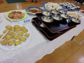 今日の、ふくしあのお昼ご飯は、巻き寿司やいなり寿司をメインに、茶碗蒸しや和え物、